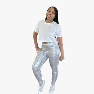 (NWT) Snake Print High Waist Leggings - Metallic Silver