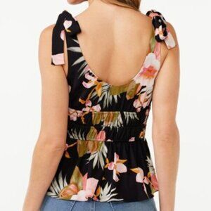 NWT Sofia Jeans by Sofia Vergara Women Floral Peplum Top with Tie Shoulder sz M
