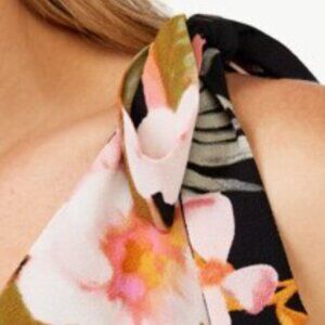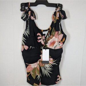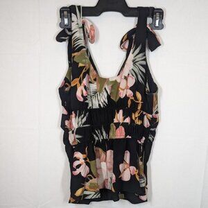 NWT Sofia Jeans by Sofia Vergara Women’s Floral V-neck Peplum Black Top with Tie Shoulder,