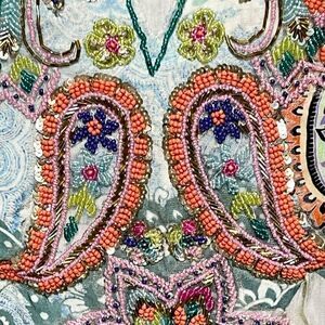 Soft Surroundings Florent Tunic Aquatic Blue Size XS 29.5” long 18” pit to pit Beaded Accent Design on Front New This eccentric, lightweight tunic features a bold print with beaded embellishments at the neck and front. Classic fit XS (2-4) Viscoe 66% Modal 34%