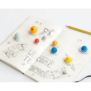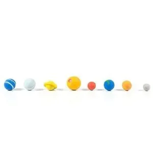 A scale model of the solar system made out of erasers. Well… Not the whole solar system, just the 8 large planets orbiting the Sun (the Milky Way contains at least 100 billion planets, that’s too many to fit in the packet).