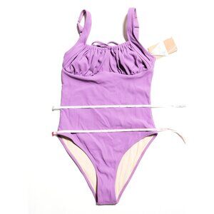 NWT Solid Light Purple Cutout Ruched Tie One-Piece Swimsuit 🦄 BERLOOK