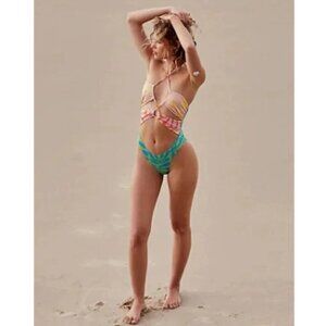 NWT Solid & Striped colourblock tropical print cut out one piece swimsuit, M