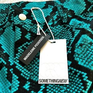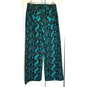 NWT SomethingNEW Kamala Wide Leg Snake Print Pants in Turquoise Blue Size 6