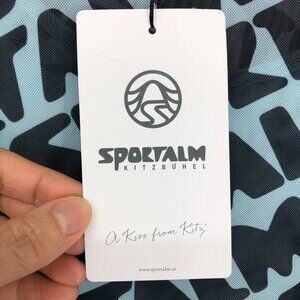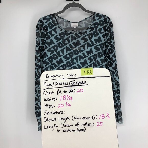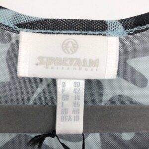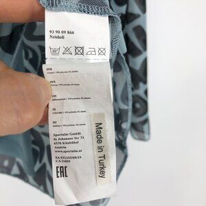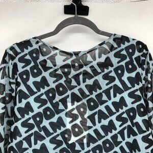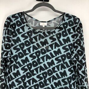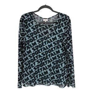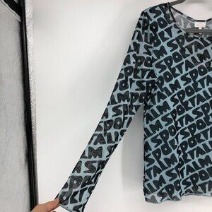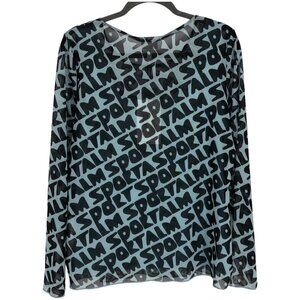NWT Sportalm Blue Black Mesh Repeating Logo Long Sleeve Sheer top size 10