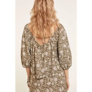 NWT Springfield Reconsider Floral Linen Off Shoulder Boat Neck Open Back Top