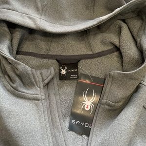 NWT Spyder Grey Hooded Fleece Sweater / Jacket Front Zip