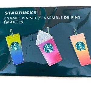 NWT Starbucks Enamel Pin Set Europe Exclusive Cold Cups 3 Pieces Limited Edition