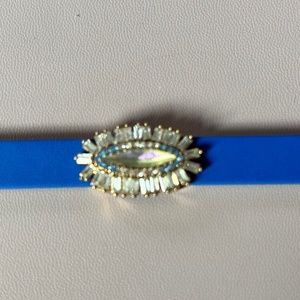 This is a NWT Stella & Dot reversible leather band with royal blue on one side and light blue on the other (8-3/4" long). The Glitz & Glam Charm has cubic zirconias and crystal details. 1/2" x 1" in size. The charm also works with other mesh and leather bands from Keep Collective.