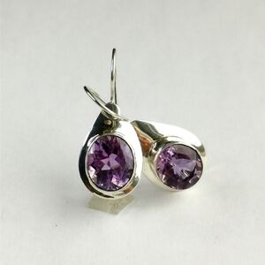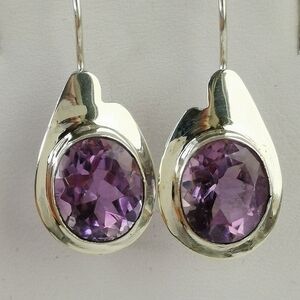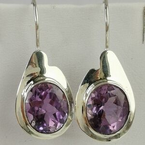 NWT Sterling Silver modernist 4ct oval amethyst drop earrings
