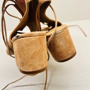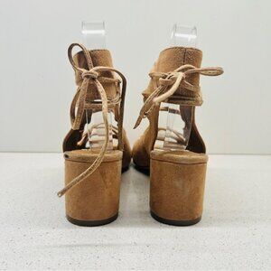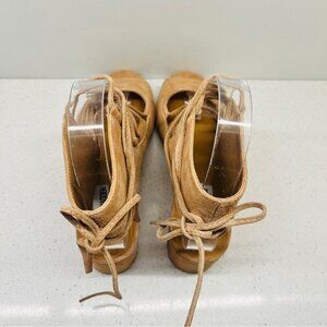 NWT Steve Madden Admire Sandals Sand Tan Leather Suede Lace Up Heel Sz 7.5B Flaw