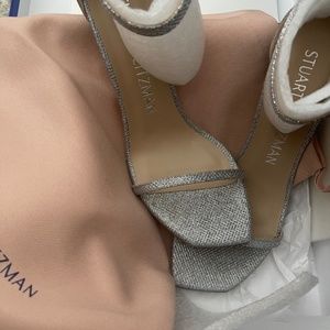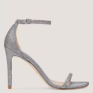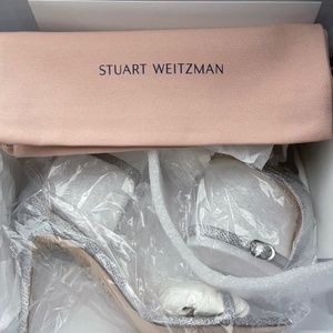 NWT Stuart Weitzman Nudistcurve 100 in Silver/New Noir 38.5