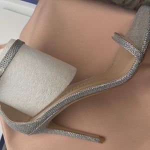 New in box, never worn. These elegant, sparkly high-heeled sandals complement a variety of outfits with the “unicorn” undertones of blue & purple - not your basic silver sparkle shoe! The most comfortable stilettos (iykyk!) that can be dressed up or down.. a new neutral that goes with nearly anything from a formal gown, a sexy minidress or denim.