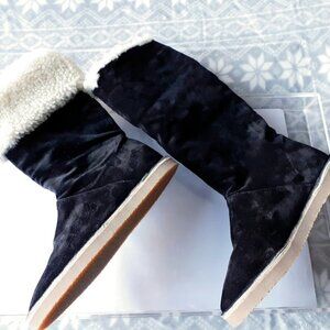 NWT Stuart Weitzman The Nata black suede with shearling trim flat bootie