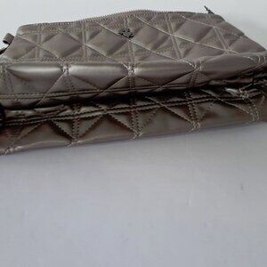 NWT Sugarfree shiny effect dark grey quilted design faux leather cosmetic bag
