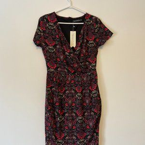 NWT Sugarhill Baroque Print V-Neck Dress