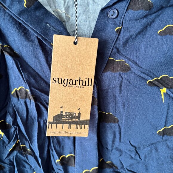 NWT Sugarhill Brighton UK16/US 12 Dark Blue Button Front Shirt with Storm Clouds
