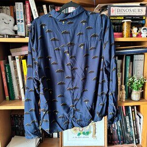 NWT Sugarhill Brighton UK16/US 12 Dark Blue Long Sleeve Button Front Shirt with Storm Clouds