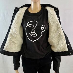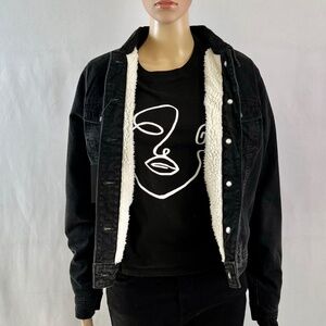 NWT Suko Jeans Sherpa Lined Trucker Black Denim Jacket, Size M