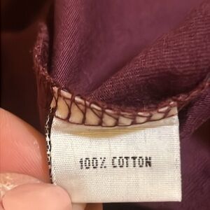 New with tags. Stylish burgundy polo shirt with a subtle blue pattern. Features a classic collar with contrast trim in navy and button-up design.