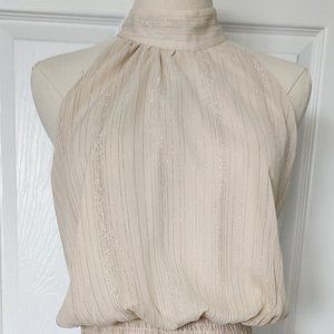 New with Tags Sweet Lemon Ivory and Gold Halter Dress with Button closure and elastic waist.