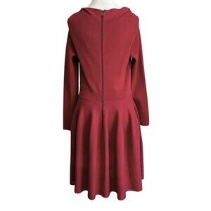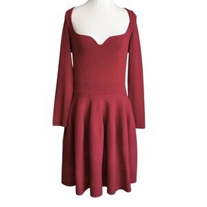 TED BAKER VIENNIA LONG SLEEVE STRETCH KNIT FIT & FLARE DRESS IN DEEP PINK, Ted Baker Sweetheart Skater Knit Midi Dress - Viennia Burgundy dress