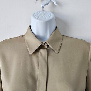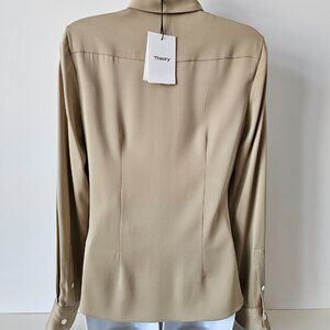 NWT THEORY Taupe Brown Silk Classic Fitted LS Blouse Shirt Top Small