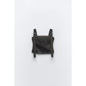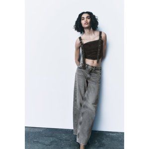 NWT TRF BUCKLED DENIM TOP, BLACK WASHED SMALL