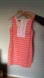 DESCRIPTION: The perfect dress for your next warm weather vacation. Fully lined. Zip up back. Coral with white stripes and pretty lace front detail.
