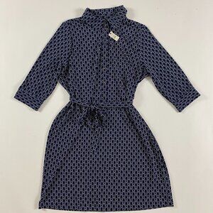 NWT Talbots Shirt Dress Womens Size 2XP Petite Blue Belted Buttons Geometric