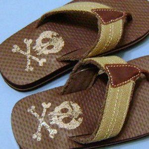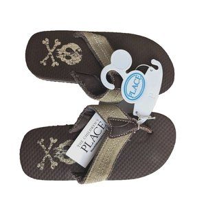 NWT The Children's Place Boys Brown Flip Flop Sandal Skull Slip-On 10-11…