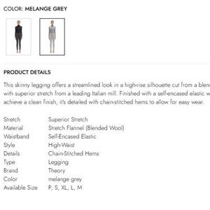 NWT Theory ADBELLE High Waist Light Gray Stretch Wool Flannel Leggings S