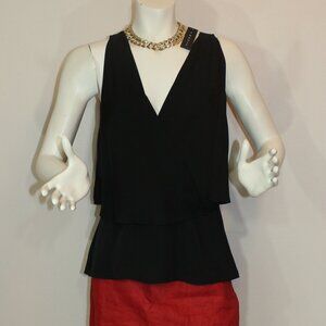 NWT Theory Alizay Layered 100% Silk Tank Top In Black zip on back, sleeveless size Large