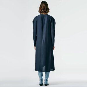 Tibi Featherweight Eco Crepe Dress in Midnight Navy, size 8. Fits true to size for a loose fit.