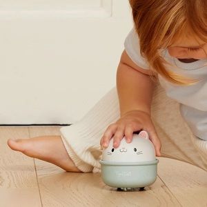New These 2-in-1 pals rocks back and forth, providing hours of entertainment. Or, remove the base, press down on your little pals head and watch it glide across the room on its built-in wheels. There's no limit to what your kid can do with this whimsical critter rocking around their space!