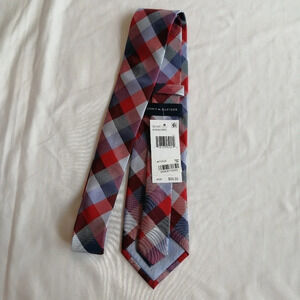 NWT Tommy Hilfiger 100% Silk Blue and Red Checkered Print Tie Preppy Classic