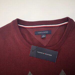 NWT Tommy Hilfiger Men's Size 2XL Burgundy & Grey Argyle Pattern Sweater