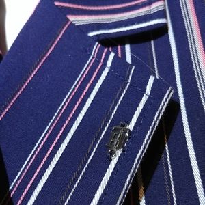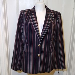 NWT Tommy Hilfiger Navy Blue Pink Cream Pin Striped Classy Blazer