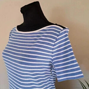 ❤ NWT Tommy Hilfiger Striped T-shirt Blue White Boatneck Tee Medium Short Sleeve