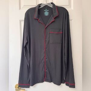 Upgrade your loungewear with this premium Tommy John men’s pajama top in black with bold red contrast piping. Made from an ultra-soft and breathable tri-blend fabric, this long sleeve top is tagless for comfort and features a button-down front, chest pocket and relaxed fit that moves with you.