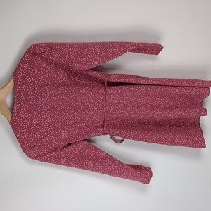 Pink and white polka dot wrap dress Longsleeves with buttons Size 2 Flat measurements; Pit to pit 15" Length 30" 061
