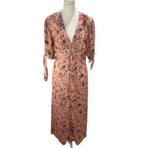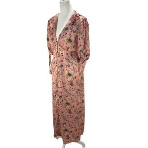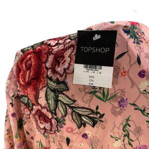 NWT Topshop Pink Floral Embroidered Maxi Dress with Button Front