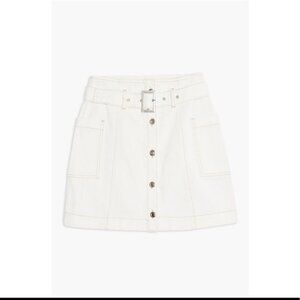 NWT Topshop White Denim Button Front Belted Jean Skirt