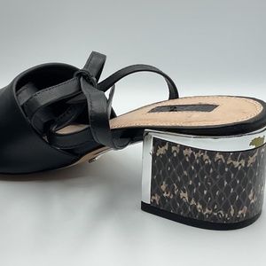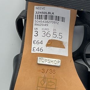 NWT Topshop Women’s Black Sandals With Long, Tie Up/Lace Up Strap With Animal Print Design On Heels. US Size 5 1/2, EUR Size 36. Please Review Photos As Heels Have A Few Discoloured Spots (Ie: Green/Yellow Color On Silver Trim Of Heels) From The Manufacturer That Do Not Effect The Integrity Of The Shoe. Measurements Are As Follows;