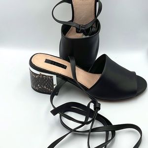 NWT Topshop Women’s Black Sandals/Long, Tie Up/Lace Up Strap/Animal Print