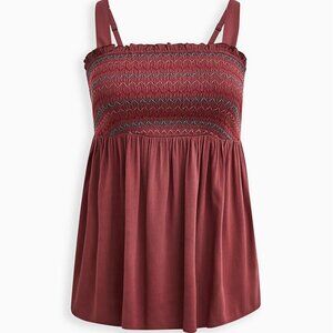 NWT Torrid 0X Smocked Babydoll Tank - Dusty Red