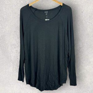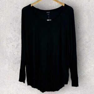 Torrid Waffle Crew Neck Raglan Top in Deep Black and Women's Size 1X. A classic crew neck, waffle construction and ribbed raglan sleeves liven up this tee that you'll love to wear on a chilly day. Crew neckline. Long raglan sleeves; ribbed upper. Shirttail hem. Rayon and spandex. Machine washable. Made in Vietnam. Brand new with tags. No flaws.