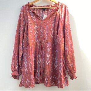 NWT Torrid Red Ikat Gauze Peasant Blouse