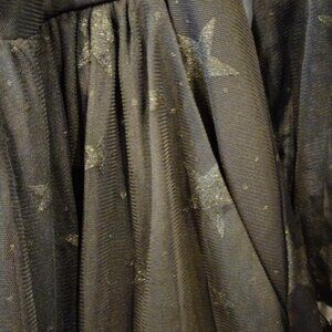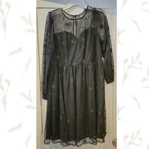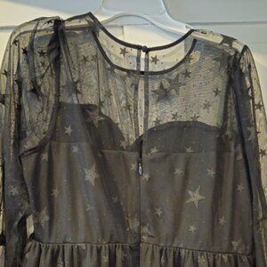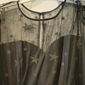 Super cute black Torrid dress, brand new with tags, size 14. The mesh has sweetheart illusion neckline, with a star print all over. Zippers up in the back. Midi length.