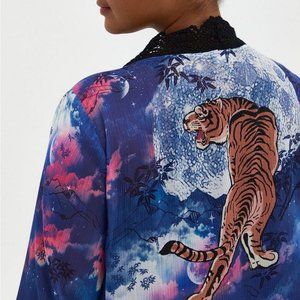 NWT Torrid Tiger Print Crochet Trim Chiffon Kimono SIZE 4